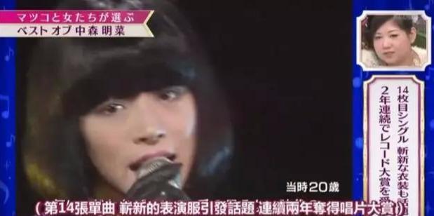 1984年中森明菜与同时代歌手柏原芳惠进行melody对战,身着绿色绸裤搭配小马夹的明菜站在穿金色连衣裙礼服的芳惠身旁显得非常违和