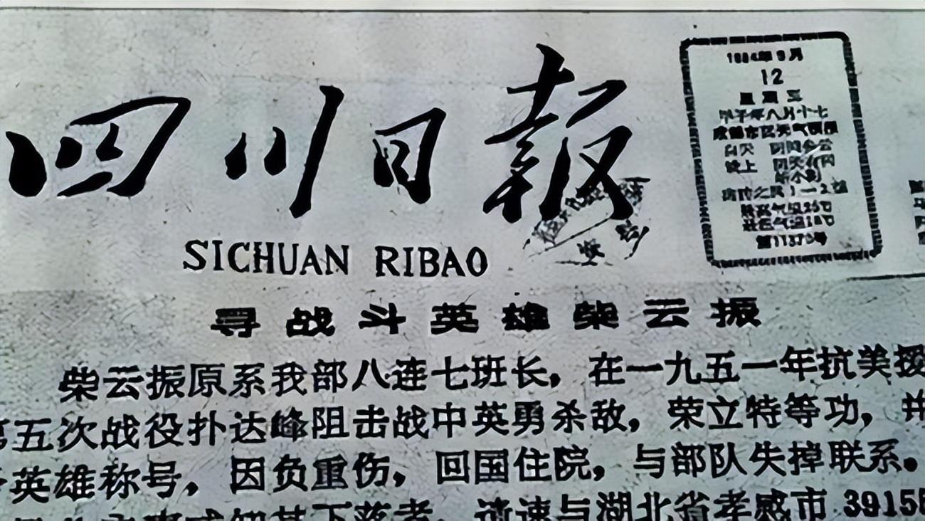 后来,在多方艰苦寻找,终于在1984年在岳池县找到失踪三十三年的战斗英雄柴云振。