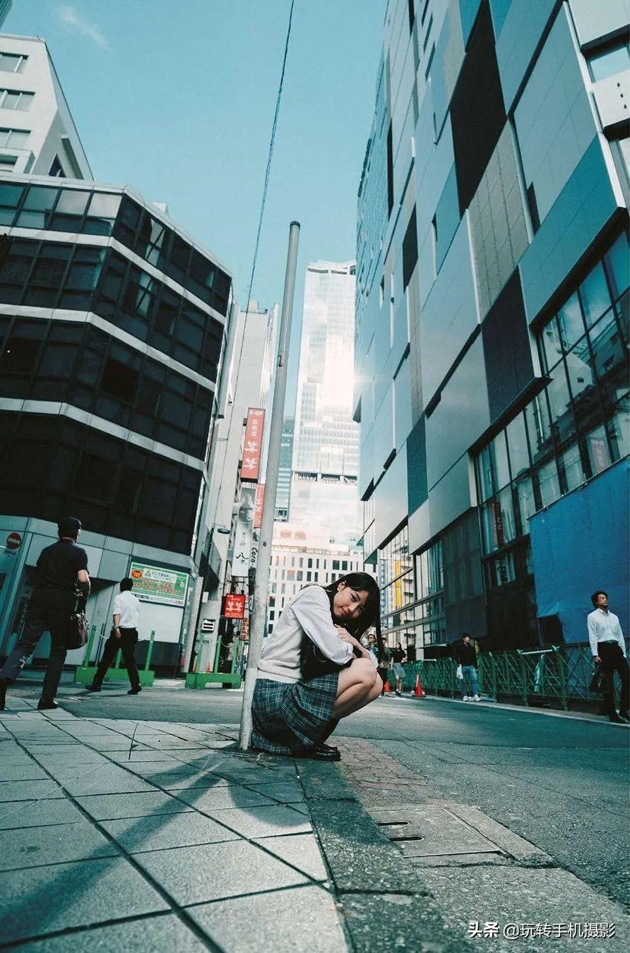 例如,尝试安排被摄者蹲在某一角落,然后拍摄者根据场景的建筑特点采用略高或者是略低的视角,记录被摄者蹲着的状态。