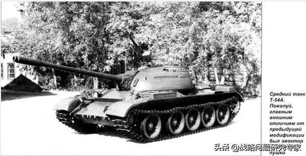 前苏联T-54A型坦克,可见炮口标志性的抽烟装置