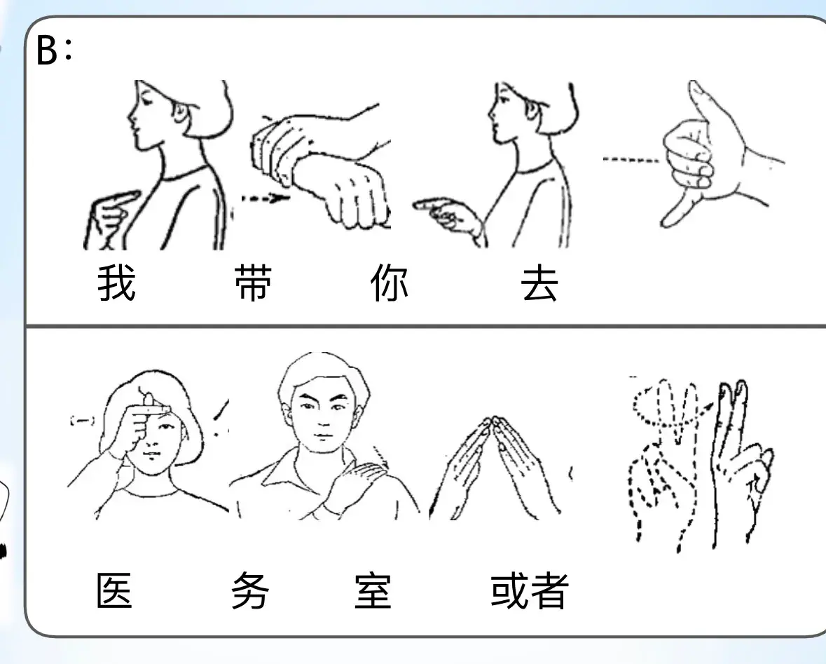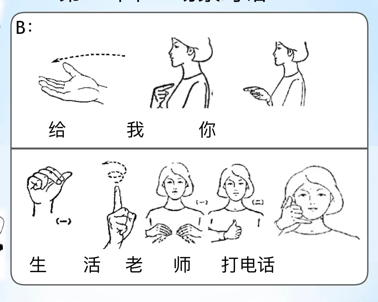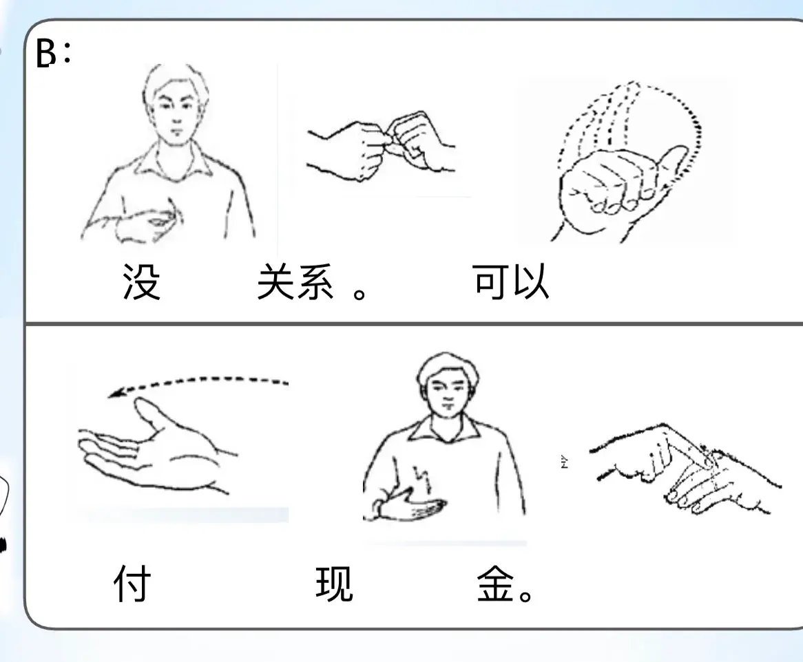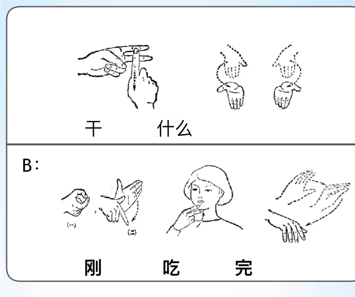 以上模拟场景进行手语对话练习,生动而有趣,可以和家人、朋友一起学习,既学会了手语,又增进了感情,何乐而不为呢!