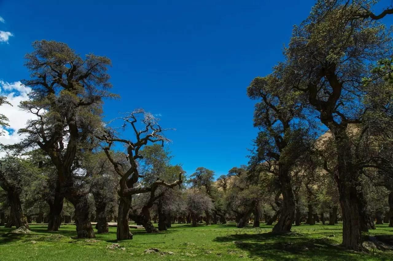 曲卓木沙棘林作为世界“三最”即:全世界年代最久远、面积最大、海拔最高。该林地位于曲卓木乡政府附近的沿娘姆江河谷分布着共约2000多亩的沙棘林,沙棘林最高约15米,树围最粗4.5米。沙棘林郁郁葱葱,树木各具形态,让人颇感震撼。是西藏面积最大,保存最完好的原始沙棘林,被称为“原始盆景”,经过考证,已有700到1000年历史。