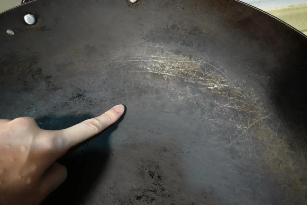 因为我平时炒菜倒油的时候只会在中心转一圈......所以边上还是会有点铁锅的“本色”
