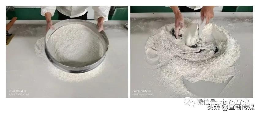 炒粉:烘炒蒸熟的小麦粉,直至水分炒干。