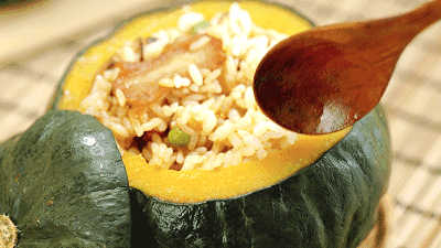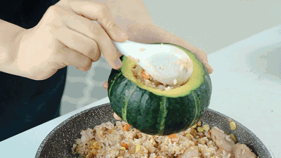 噔噔!美味又养生的蒸南瓜饭就做好啦~吃完还不用洗碗