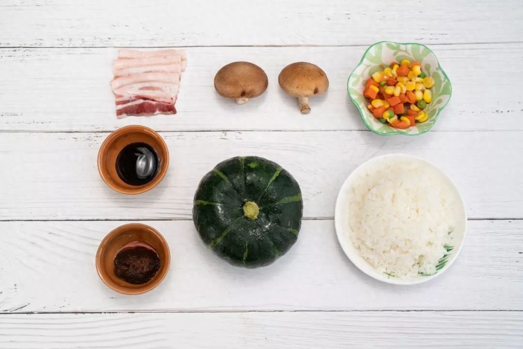 南瓜 2个 / 五花肉 200g / 米饭 适量