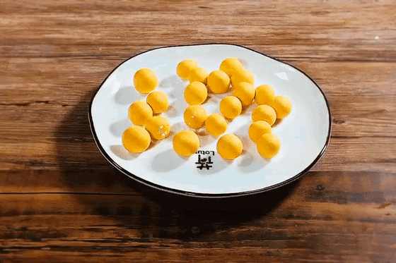 ②将南瓜面团搓成一个个小丸子,个头大小随您喜欢~盘子里记得撒点糯米粉,不然会粘连哦~