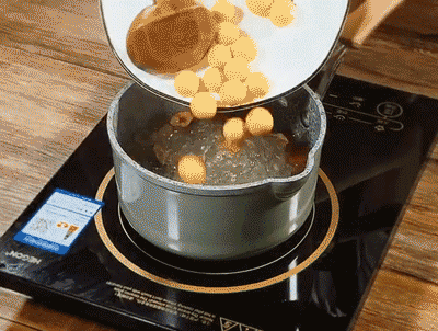 ③锅里水烧开后,加入红枣和南瓜丸子,用汤勺轻推一下,以免粘锅。再次煮开至南瓜丸子浮起,随后放入红糖、3勺甜酒酿和些许枸杞,搅拌均匀,出锅前加入适量水淀粉勾芡一下即可(水淀粉也可不加)