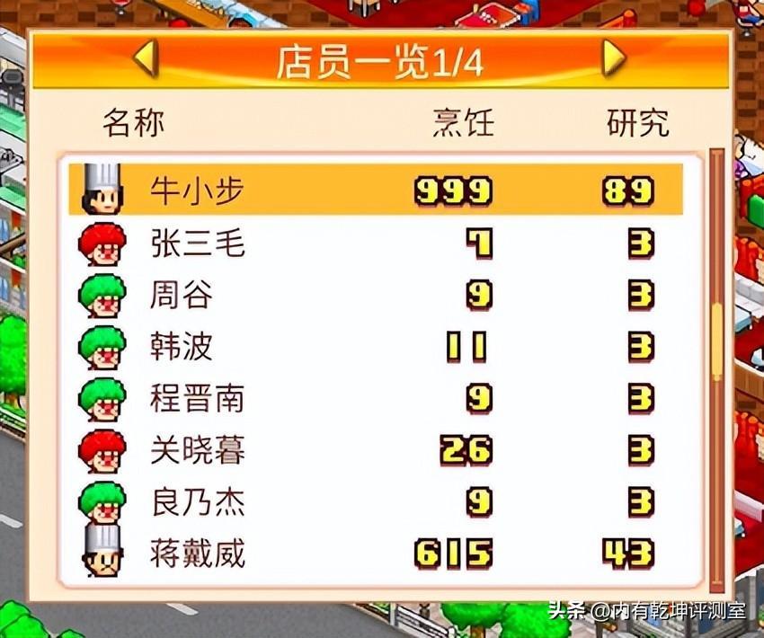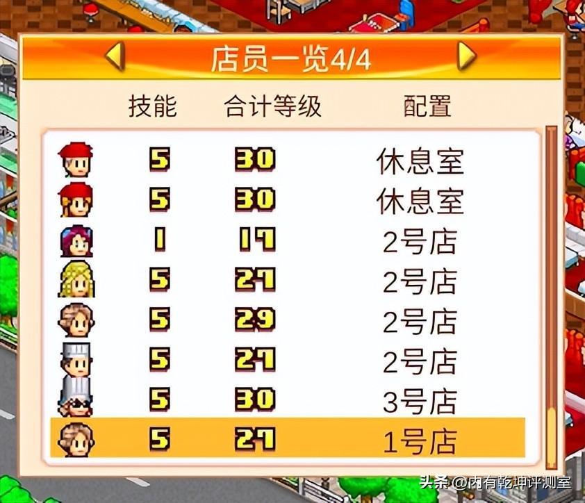 最后就是员工转职,能转就转,多学习技能以备不时之需;把跑得快的员工设置在厨房和跑堂,跑堂必备技能是快速行走和运送料理,这样可以提升传菜速度,保证数值高的员工在工作就好,不能胜任工作的就呆在休息室待命。