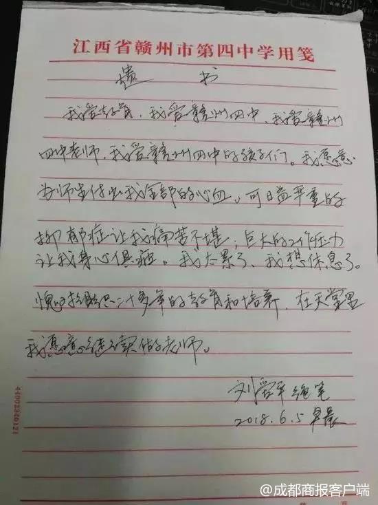 然而,在6月5日他却留下了遗书,用这种方式离开了他热爱的教育事业,热爱的学校,热爱的师生,让很多人都感到难以相信。
