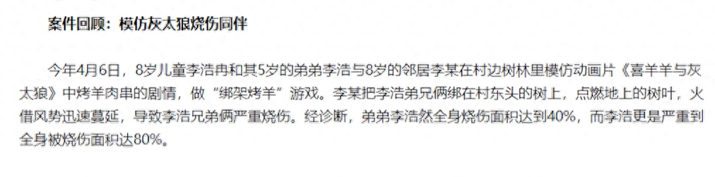 当初《喜羊羊》被举报的事情闹得很大,因为有孩子模仿“烤全羊”情节致伤,因此家长群情激奋,更加激化了家长与动画之间的矛盾。