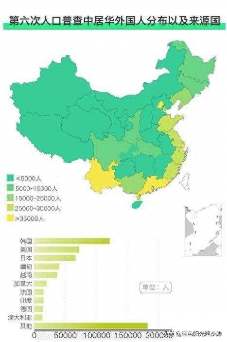 综合以上情况在中国境内的外国人已经超过百万人。外国人多分布在东部沿海地域,韩国、美国、日本为外国人来源国前三名。城市比较多的外国人:上海,北京,广州,深圳,天津,青岛,杭州,成都,重庆,武汉,满洲里,大连。同时外国人非法滞留务工情况近年来逐渐增多。外国人中非法居留的绝大多数因不了解我国法律规定而短期逾期滞留等情节轻微的人员也有部分外国人在华恶意非法居留。