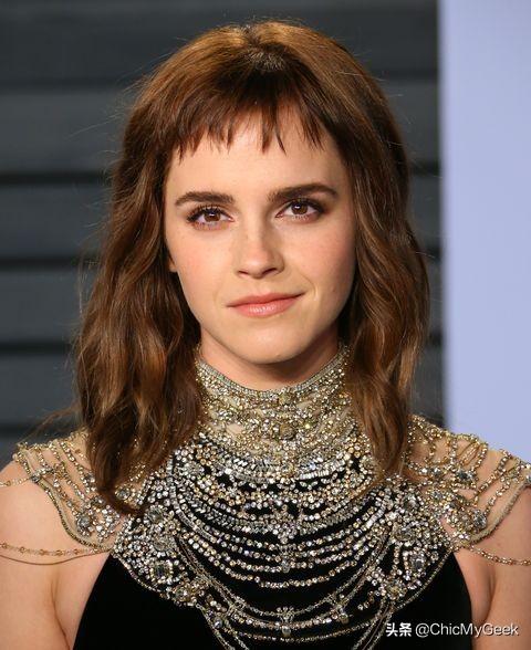 艾玛·沃特森在2018参加奥斯卡金像奖的后续活动时,放下棕色长卷发,也配上了曾经剪过的狗啃式刘海,以及高至颈项的饰品,多项元素的碰撞竟也相当的和谐。
