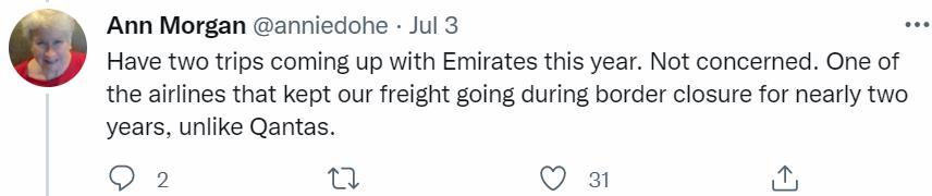 它家是边境关闭期间,帮我们维持了近两年货运的航空公司之一,不像澳洲航空。