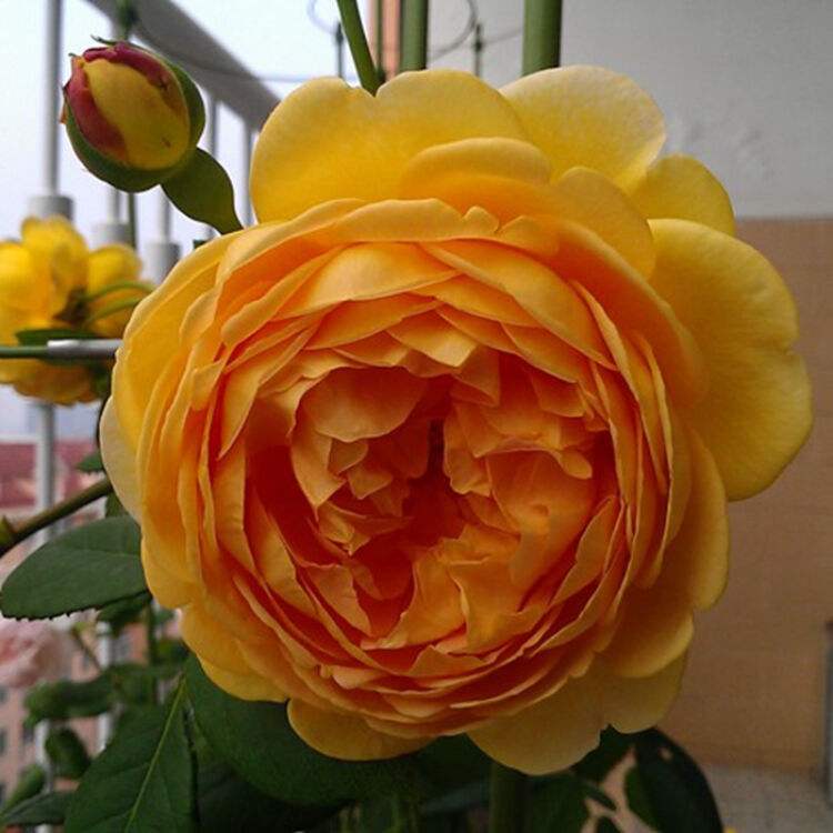 藤本月季黄金庆典生长速度很快,我在2018年夏天6月份入了一棵牙签苗,到手高度20厘米左右,现在高度3米左右,如果不横拉,已经到二楼窗户边上了。