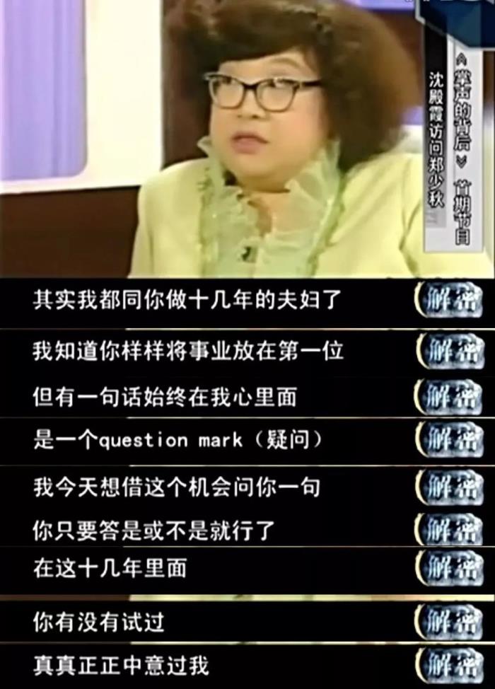 沈殿霞曾问过郑少秋,你有没有真正的喜欢过我。郑少秋:有