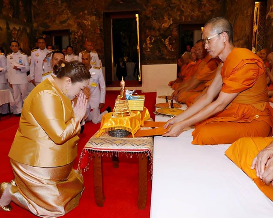 2021年4月,西里帕公主又前去参加了一个农业项目的仪式,她身穿一件金色的泰国礼服,虔诚地对着高僧进行祭拜。