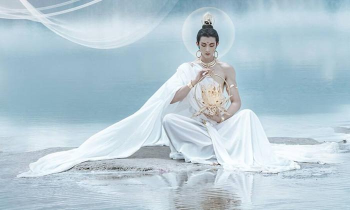 一袭灵动的白衣加上有致的五官,小梦使自己展示的形象极具东方美感。为了点明“菩萨”与“圣洁”之间的关联,他还用《净土》来命名自己的这组作品。