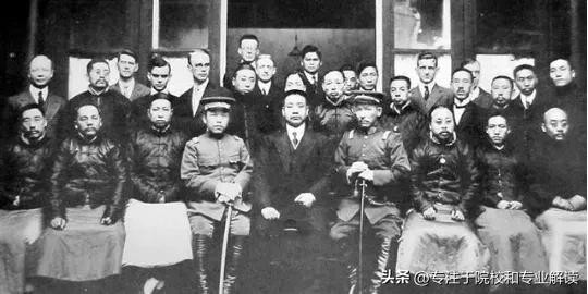(1913年湖南都督谭延闿(前排正中坐者)与雅礼医学会成员合影,后排左一为胡美)