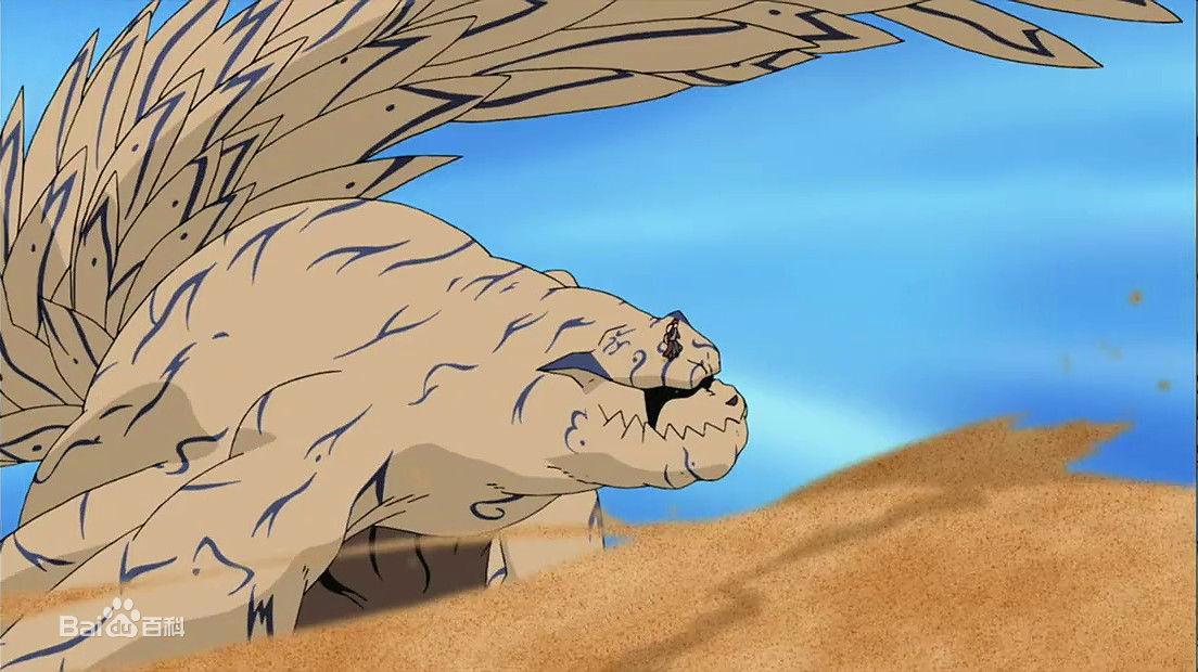 人柱力:砂忍者村——我爱罗,拥有一条由多根针刺组成的尾巴,是一只全身被砂子所覆盖的土黄色大狸猫,身上有着代表风神图案的紫罗兰咒印纹身。原型是日本古代分福茶釜传说中狸猫幻化而成的老僧“守鹤”。能力:风沙,拥有控制强风和沙尘的能力。木叶袭击之时自我爱罗体内觉醒,被鸣人打败。后我爱罗败于迪达拉,一尾被晓所封印。我爱罗虽然一度因此而死亡,但因为千代婆婆的转生忍术而再度复活。后一尾守鹤被宇智波斑吸入外道魔像,之后一部分查克拉被带土带走并放入鸣人体内。