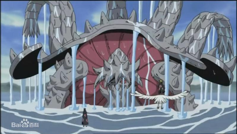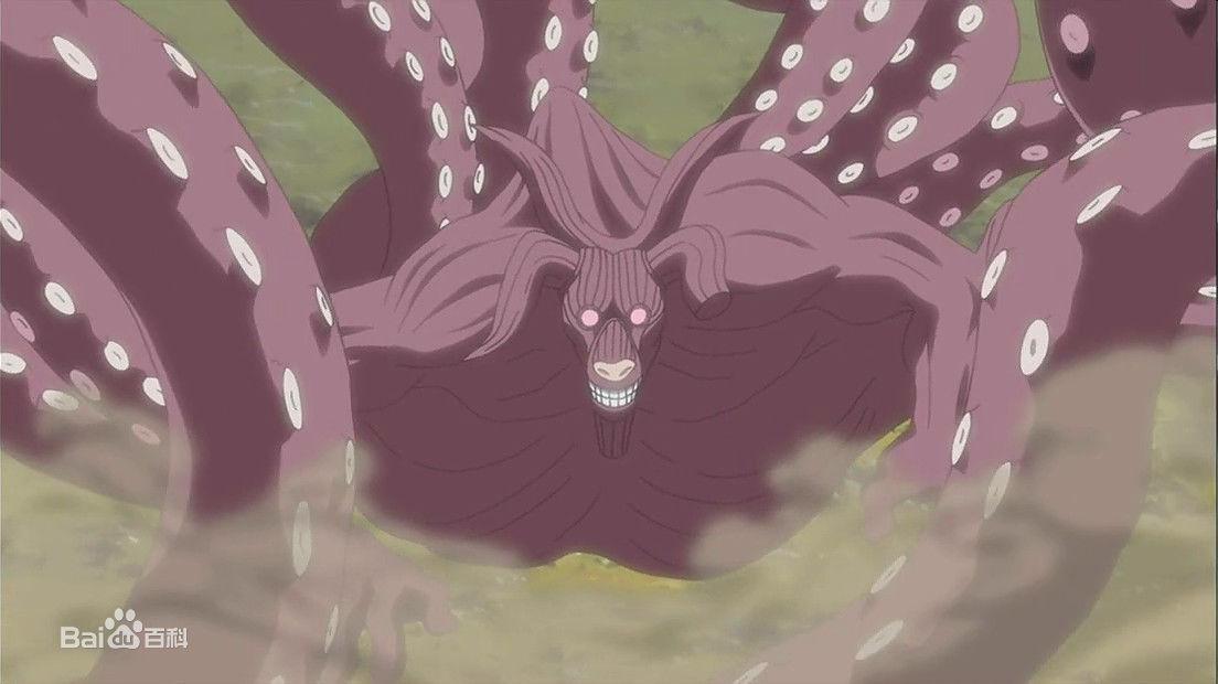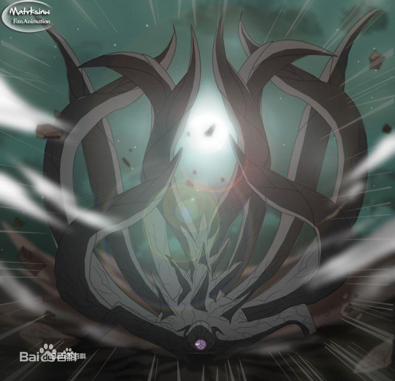 十尾又称神树、外道魔像人柱力:大筒木羽衣(六道仙人)→宇智波带土→宇智波斑。简介:第一形态为拥有十条尾巴的怪物,长有一只巨大的且由写轮眼和轮回眼组成的眼睛,头部凸起,只有双手,脊背为巨大树枝;第二形态为体型消瘦的怪物,长出双腿和数对触角只有右耳,背上的巨大树枝变为巨大花苞,尾巴末端都变成了手掌,并能够站立;第三形态为体型肥胖的怪物,触角变长,口部能张开出巨大的霸王花,背上的花苞缩小许多;最终形态一棵顶天立地的神树,神树顶端长有莲花,只需照映月亮即可施放无限月读(大部分已经被宇智波斑所吸收,只留下神树的根部)。能力:阴阳遁、血继网罗、地爆天星、操纵自然能量(天变地异),查克拉的起源。十尾是查克拉的创造神,在世间上流传着“天目一个神”、“大太法师”等名称。最初的形态是“神树”,后来由于其果实被身为人类的大筒木辉夜吃掉而得到查克拉,因此暴走化为十尾企图夺回查克拉,但被辉夜的儿子羽衣(六道仙人)制服并封印,将其查克拉用阴阳遁分解成一尾至九尾的九只尾兽。而斑和带土的月之眼计划则是复活十尾并利用十尾的力量对全人类释放大型幻术“无限月读”,成就没有战争、没有隔阂的“完美”的世界。