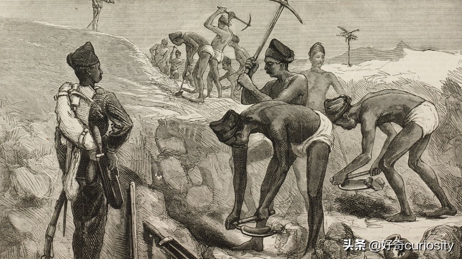在印度,大约2万名英国士兵和殖民官员统治着3亿本土人口。印度为英国提供了廉价的棉花和茶叶,而英国则有20%的工业制成品销往印度。虽然英国人在灌溉、铁路和煤炭开采业等方面倾注了大量投资,但其每年仍能拿走印度1%的财富,大多数普通印度人仍然处于贫困之中。