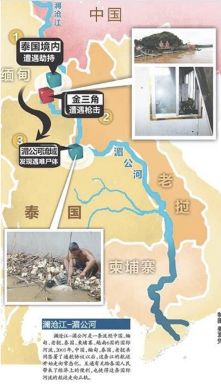 2011年10月5日,泰国媒体发布新闻,称在两艘中国商船上搜出毒品,涉嫌武装贩毒,并在激烈交火中被袭击,多数船员掉入河中。