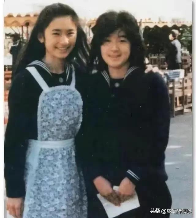 纪子学生时代的学生照和同学站在一起真的是让人眼前一亮,这不是亭亭玉立的大美人,但整个人看起来很是清纯明媚很讨喜。