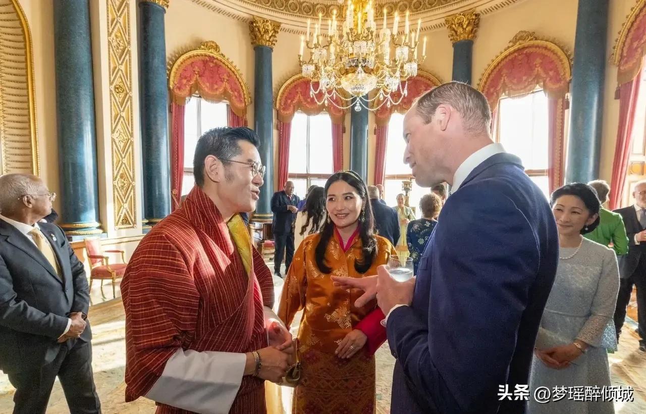 然而到了英王加冕礼午宴上纪子就尴尬了,同为亚洲王室,难免会被媒体和民众拿来比较,不丹国王旺楚克和王后吉增佩玛是各国王室活动的常客,当天不丹国王夫妇二人一身民族装,让人一眼难忘的存在,端庄美丽的王后,高大帅气的国王,让人们看到了雪域的风情。