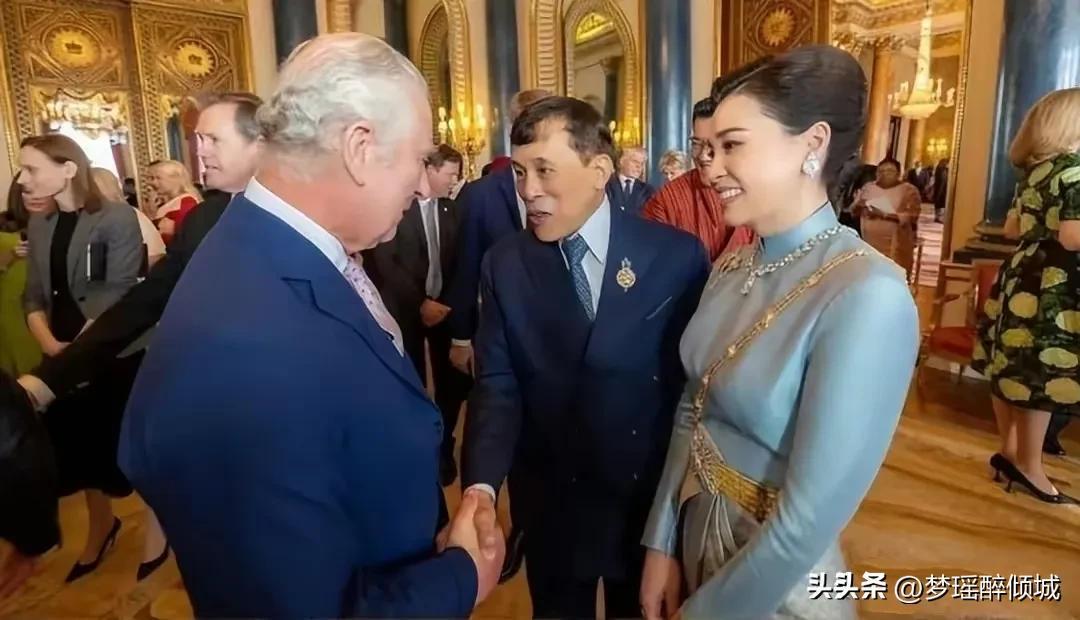 同样是会见查尔斯国王,泰王夫妇则要得体许多,苏提达王后全程保持着礼貌又不失端庄的微笑。