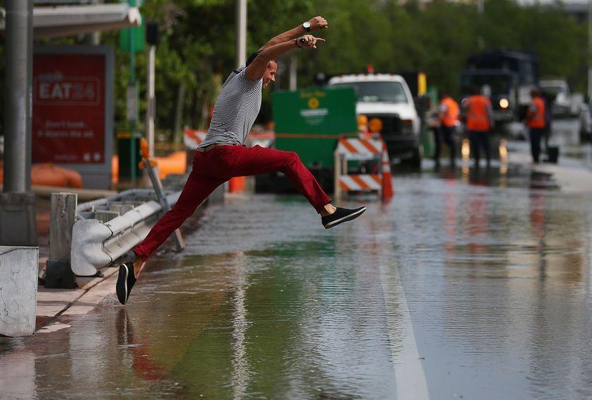 海平面上升使许多沿海城市的定期洪水泛滥,例如2015年迈阿密海滩的高潮。迈阿密正进行为期五年,耗资4亿美元的工作,以升级其雨水泵项目。(照片:乔·雷德尔/盖蒂图片社)