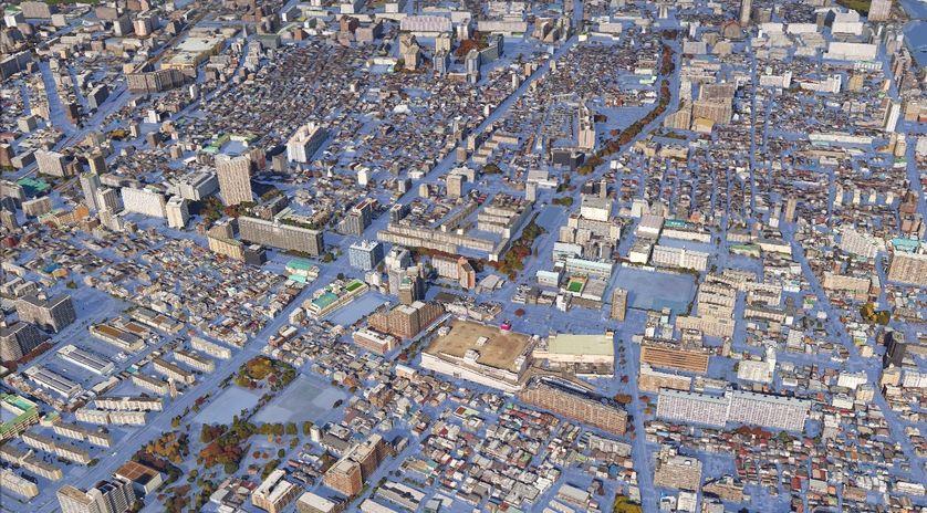 这个Google Earth模拟显示东京海平面上升了1.3米。(图片:Google Earth)