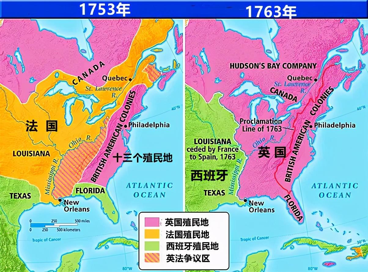 从1607年开始,伦敦弗吉尼亚公司在北美的东海岸建立了弗吉尼亚殖民地,此后的100多时间里,英国在北美的大西洋沿岸地区陆续建立了十三块殖民地。七年战争(1756年-1763年)中英国战胜了法国,取得了法国在北美的大部分的殖民地。1775年,美国独立战争(1775年到1783年)爆发,美国取得了胜利。