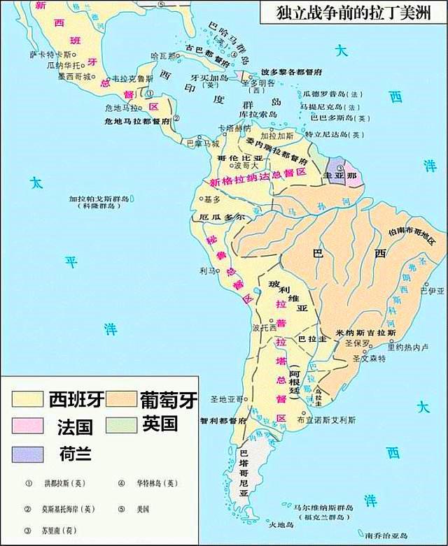 公元8世纪,摩尔人入侵西班牙,在几百年之后,1492年西班牙光复运动胜利,西班牙建立了强大的王国政府。以此为依托,西班牙可以更强有力地进行海外殖民,建立了西班牙殖民帝国。1492年,在西班牙王室的资助下,哥伦布领着一帮子人,带着枪,坐着三艘小船航行到了美洲。此后,在欧洲列强对美洲的殖民过程中,西班牙占得了先机,占领了拉丁美洲的绝大部分地区,而葡萄牙则占据了巴西,像英国、法国、荷兰在拉丁美洲也占领了一些个岛屿和陆地。当时的西班牙存在着很大的中世纪的封建残余,对于美洲更多地采用是军队占领的方式,对于美洲殖民地更侧重于对金银的掠夺,在这里发掘和开采金矿和银矿,输入到西班牙,在这里建立甘蔗种植园、可可种植园等各种种植园。