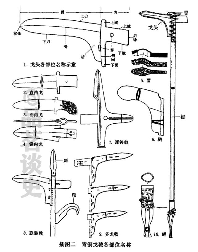 戈,在先秦时期是古战场的主要兵器之一,它是用于勾、啄的格斗兵器。在甲骨文中、鼎文中经常可以见到绘戈的图像。今天我们汉字中的“武”、“战”等与战争有关的象形文字,都从于戈,这说明了戈与战争息息相关。