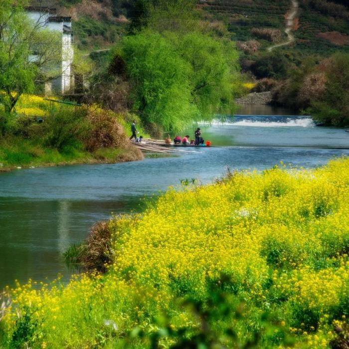 两岸不变得是巍巍青山,但春有金黄油菜花海,秋天枝头树叶泛红,哪哪都是浓浓的秋意,各具韵味。