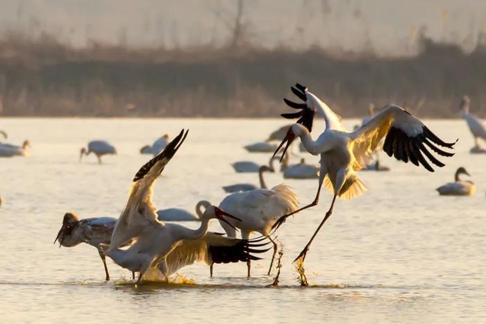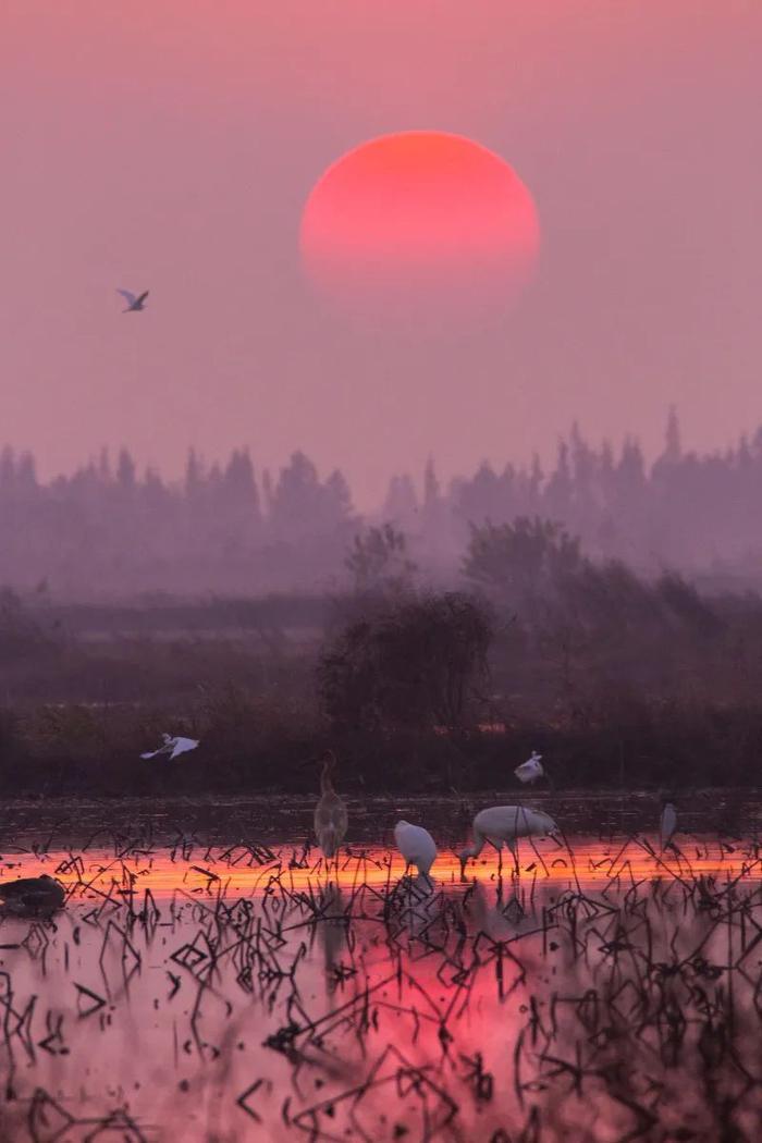 这里也是“白鹤世界”、“珍禽王国”,万千水鸟在这越冬,空中飞翔的曼妙身姿,让人见之难忘。