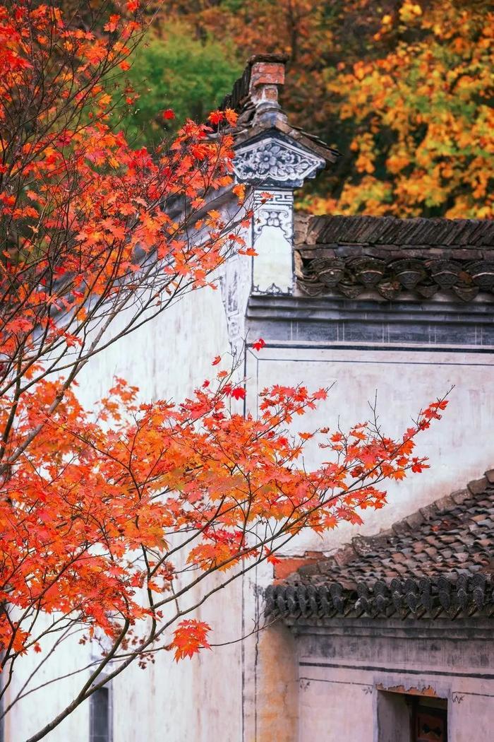 200多株百年香枫树接连红遍,粉墙黛瓦红枫树,极尽色彩之美。