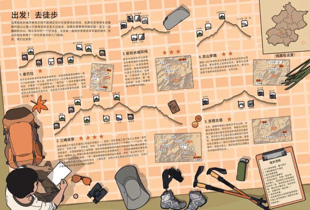 可以带着你的问题,揣着《京城绘·山川风物》里的这份徒步路线图,让城市规划师带着你体验最丰富,最专业的旅行。