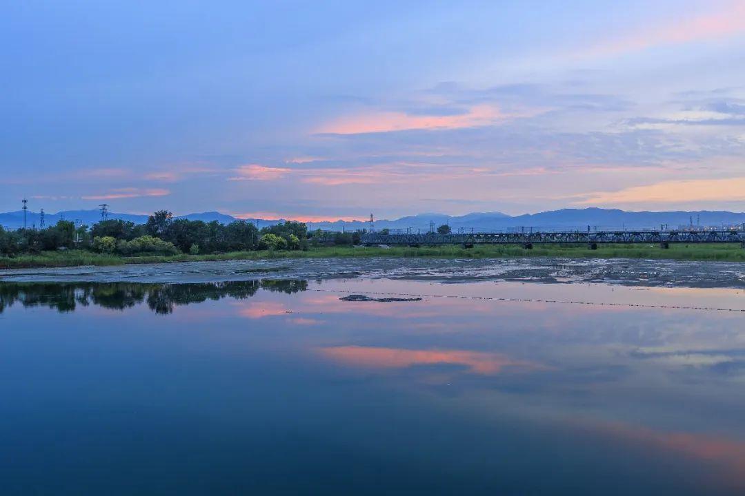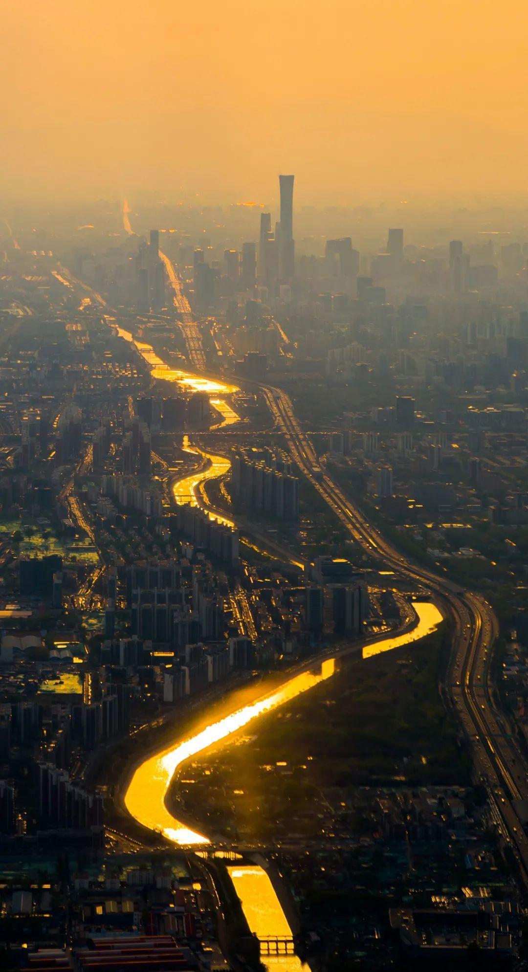 夕阳下的北京河流,金光灿灿。图/视觉中国