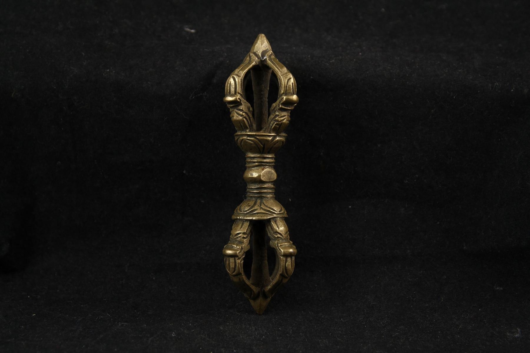 金刚杵。梵文译为 Vajra 瓦支拉,藏语称之为“多吉”,还有很多根据音译的名字就不过多赘述。金刚杵在古代印度迦毗罗卫国时期被炼化出世。由于质地坚固,能击破各种物质,故称金刚杵。在古印度时期是做为武器使用的。后融合于古印度佛教传入中国西藏。