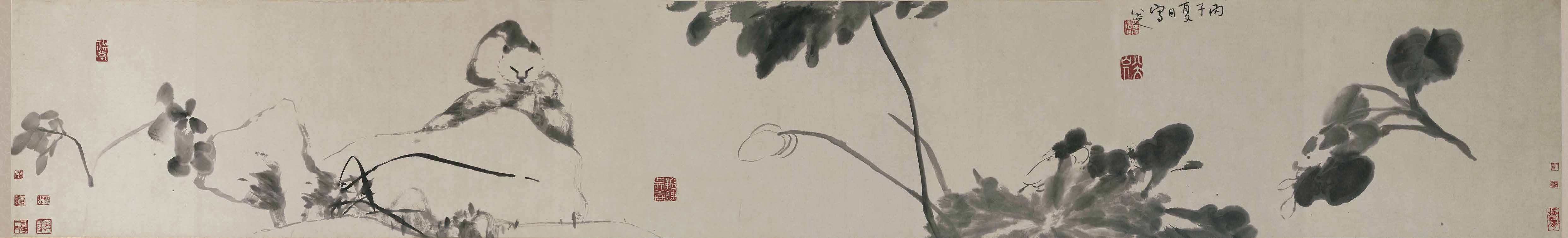 清 朱耷 猫石图卷34cm×218cm 纸本故宫博物院藏