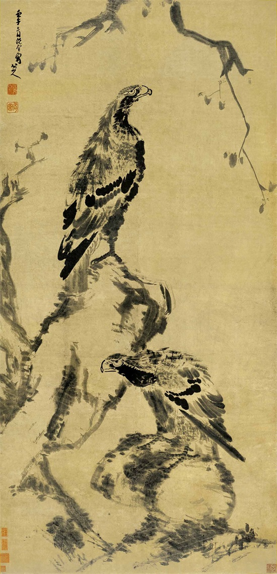 清 朱耷 古木双鹰图108cm×52cm 纸本辽宁省博物馆藏