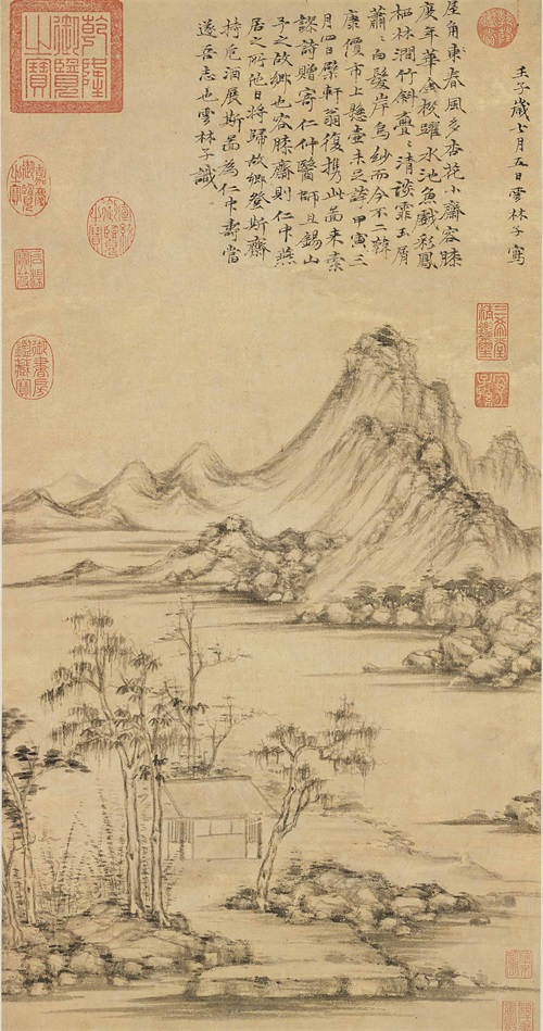五代 巨然 层岩丛树图293cm×73.4cm 绢本台北故宫博物院藏