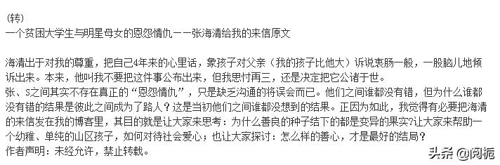 一个贫穷家庭的孩子,受到了当红明星的资助,并且考上了心仪的大学,按常理来说他应该感恩戴德,最起码也要心存感激。