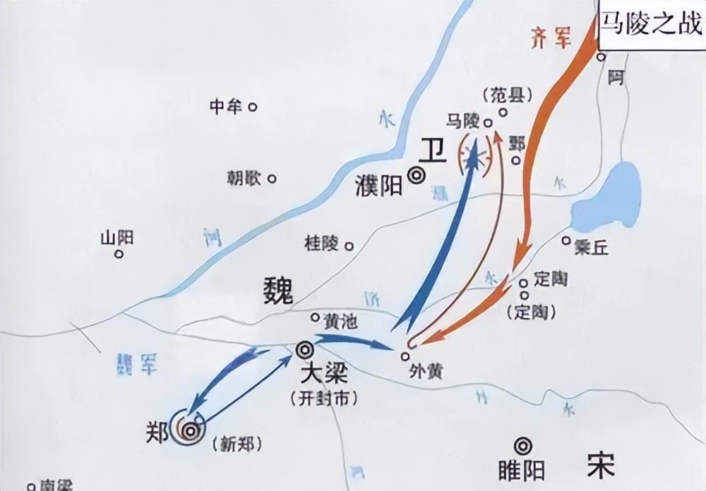 齐国派田忌率领军队前去救援,径直进军大梁。魏将庞涓听到消息后,率军撤离韩国赶回魏国,但齐军已经越过边界向西挺进了。