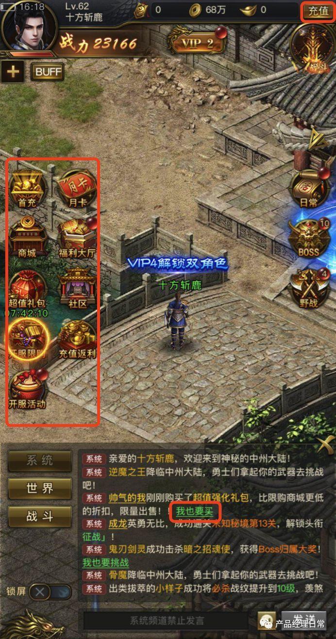 关于VIP系统,我认为传奇的思路是值得学习的,一般VIP需要充值购买,而「一刀传世」的VIP是通过做任务获得,做了简单的任务就能获得价值XXX的VIP,让用户有种赚大发的感觉。