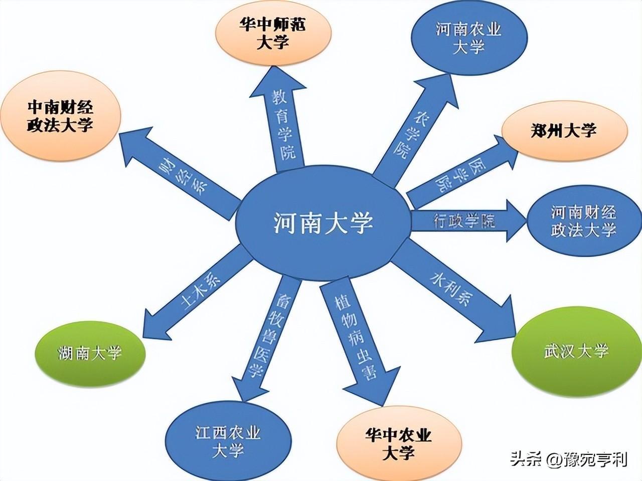 第二次拆分,河南大学已经分成两部:一部在开封,还叫河南大学(新),另一部在武汉,叫中原大学。