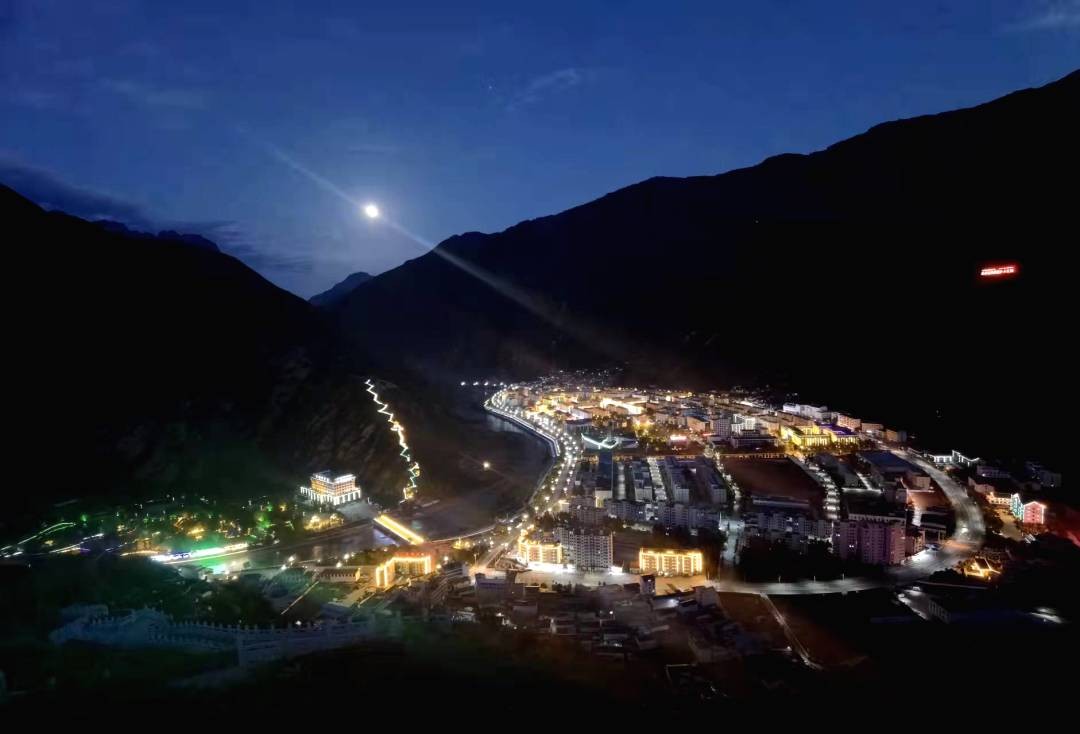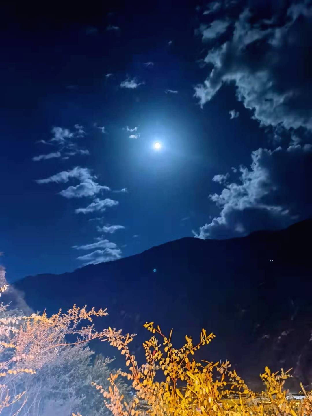晚饭后到登山峰迭新区的山腰观景台,看月出岷山耀龙江的景色!