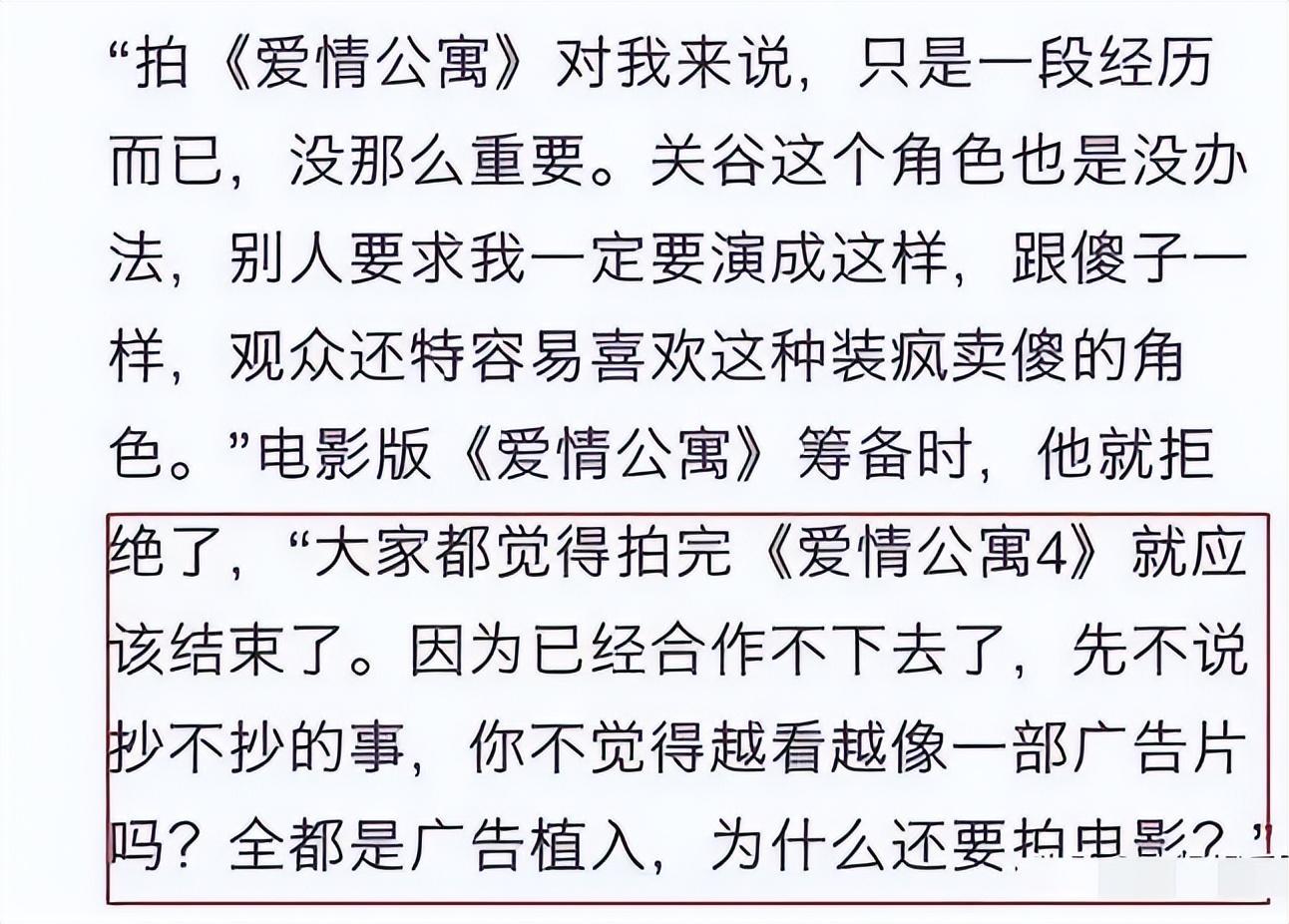 因为《爱情公寓》小火了一把,却不愿意接着演后续系列。